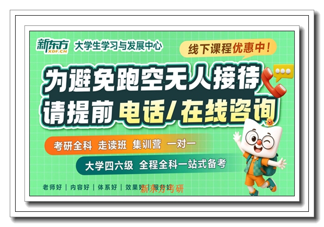 西固考研政治走读班!兰州新东方考研走读英语班兰州新东方考研走读英语班|夯实英语基础,提升应试能力,灵活走读+技巧强化,英语轻松提分考研英语是考研公共课的核心,也是不少兰州走读学子的“薄弱学科”,不少走读学子陷入英语备考困境:词汇量不足、记了就忘,阅读正确率低、找不到解题思路,翻译生硬、缺乏逻辑性,写作无从下手、得分率低,明明花费大量时间背单词、刷题,英语成绩却始终停滞不前,甚至成为上岸的“绊脚石”。走读备考的学子,更需要灵活、系统的英语辅导,兰州新东方考研走读英语班,专为兰州走读学子量身打造,深耕考研英语教研,贴合考研英语命题规律与走读学子备考特点,打造“基础夯实+技巧强化+灵活走读”的辅导体系,帮助学子破解英语备考痛点,轻松提分。分模块精准辅导,夯实英语基础。我们根据考研英语的题型特点,分为词汇、语法、阅读、翻译、写作五大模块,制定差异化辅导方案,精准对接各模块备考重点,适配走读学子的学习节奏。词汇方面,采用趣味记忆、词根词缀记忆法,帮助学子高效积累词汇,梳理核心高频词汇,提升词汇运用能力,摆脱“背了就忘”的困境;语法方面,梳理考研核心语法点,拆解复杂语法结构,结合例句讲解,让学子轻松理解、熟练运用;阅读、翻译、写作模块,重点讲解解题技巧与答题规范,通过真题演练,提升学子的应试能力。灵活走读,兼顾英语备考与生活。结合走读学子的需求,我们开设多种英语走读班型,周末英语班、晚班英语班、一对一走读英语班,学子可根据自身时间自主选择,无需住校,兼顾学校课程、实习工作与英语备考,实现劳逸结合。校区交通便捷,覆盖兰州核心区域,学子通勤便捷,节省来回奔波的时间,将更多精力投入到英语复习中。同时,支持线上回放功能,学子若错过课程,可随时回放补学,反复巩固知识点,确保英语基础扎实,技巧熟练。名师护航,全程助力提分。所有英语授课教师均为兰州新东方资深考研英语教师,拥有多年英语辅导经验,熟悉考研英语命题规律与阅卷标准,深谙兰州走读学子的英语备考痛点。老师擅长用生动有趣的教学方式,讲解枯燥的英语知识点,激发学子备考兴趣;注重培养学子的英语思维与备考习惯,指导学子高效刷题、科学复盘,提升备考效率。课后,老师针对性批改作业与作文,详细点评优点与不足,给出具体的改进建议;专职学管师跟踪英语备考进度,督促学子背单词、练真题,确保备考效果落地。选择兰州新东方考研走读英语班,夯实基础,提升技巧,让英语成为上岸加分项!咨询电话:400-6169-615实实在在做教育,不搞花哨噱头。西固考研政治走读班!.